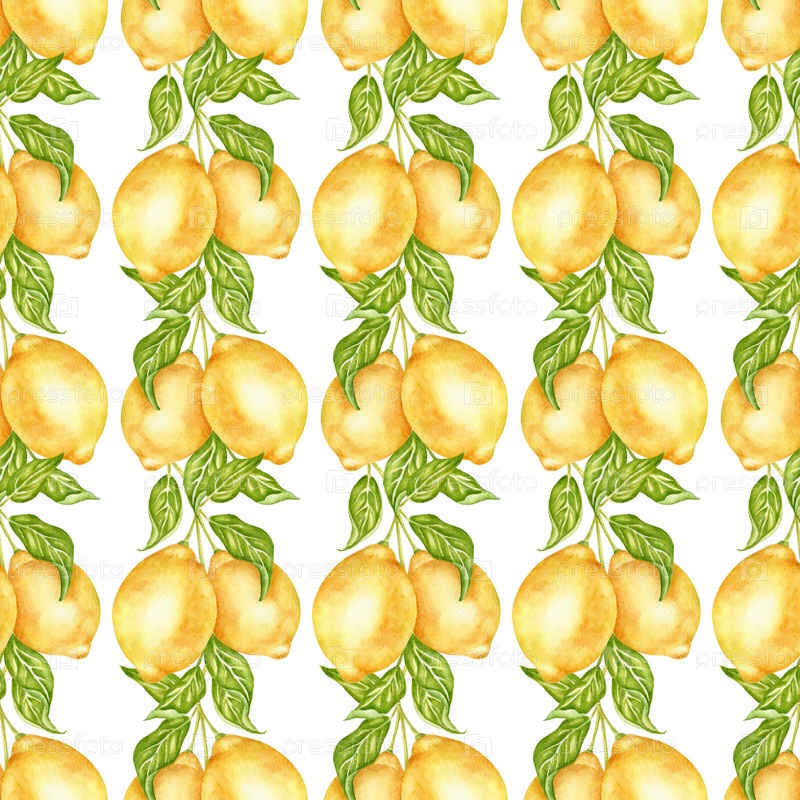 Акварельный ботанический бесшовный рисунок лимонного дерева с фруктами и листьями, свежая летняя печать