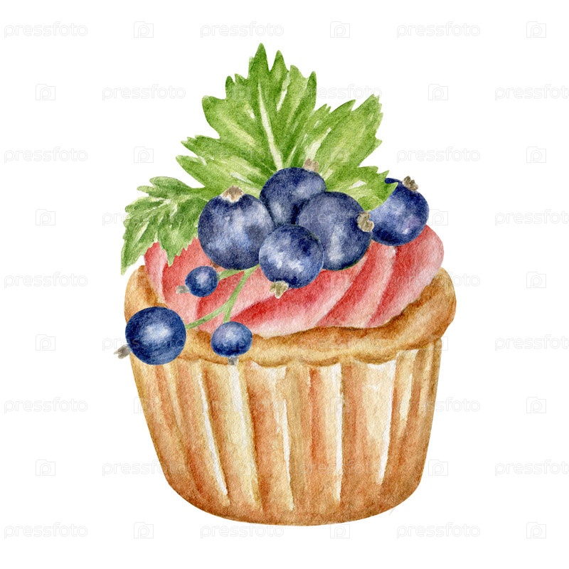 Праздничный кексы с сливками и смородиной ягоды, сладкие выпечки, праздничные угощения, дизайн акварели