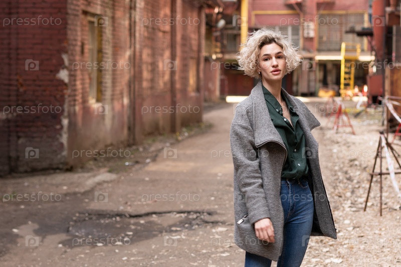 Красивая молодая женщина позирует снаружи в пальто