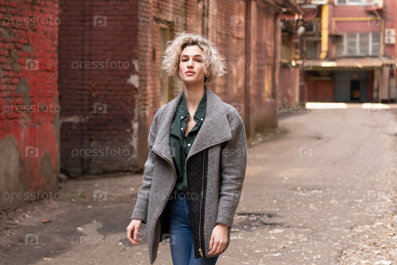 Красивая молодая женщина позирует снаружи в пальто