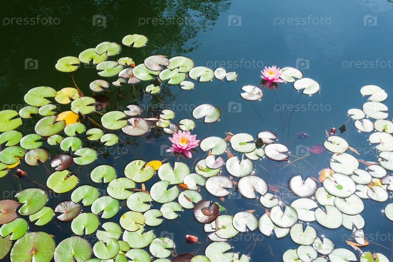 Водяная лилия в пруду в яркий солнечный день