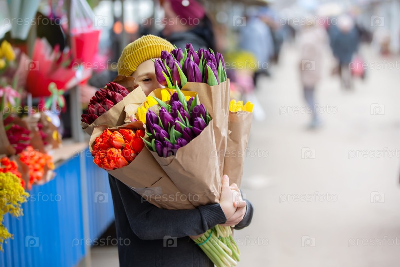 Мальчик держит букет цветов и улыбается