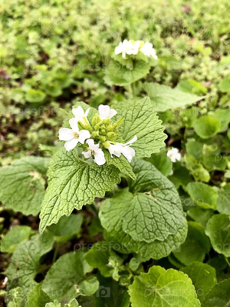 Дикие цветы: Alliaria petiolata, также известный как стебель чеснока