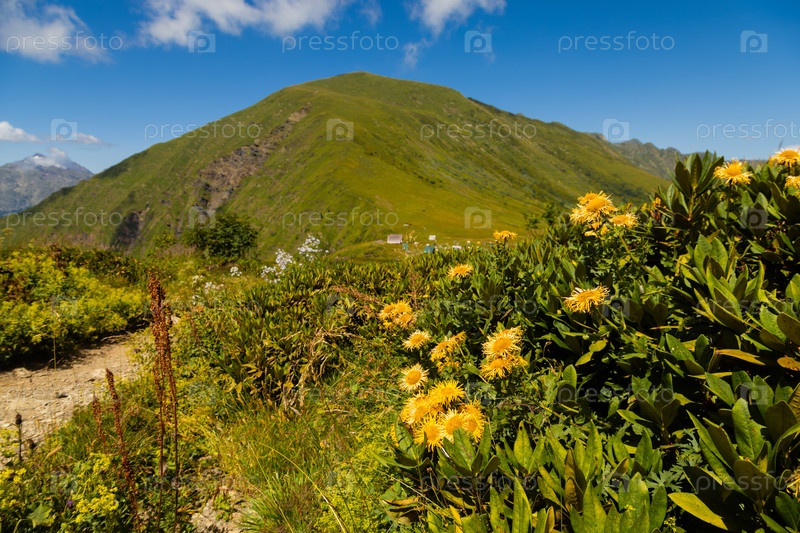 Горный пейзаж с цветущими растениями
