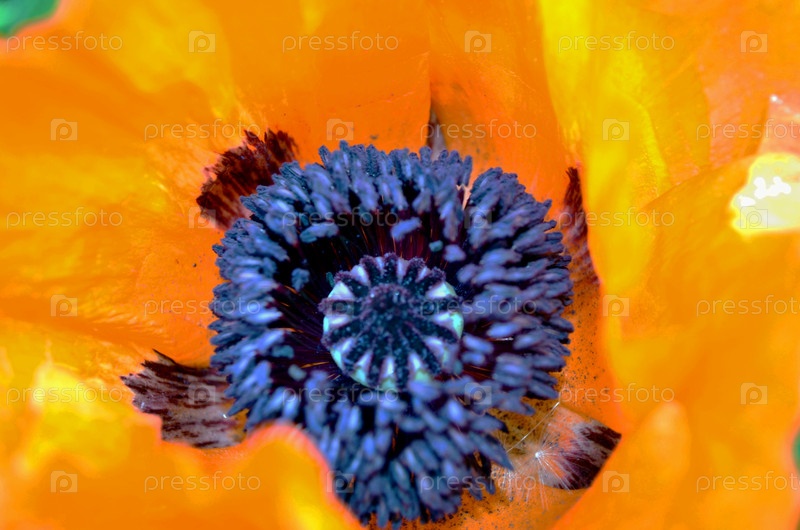 Восточный маковый цветок ближайший снимок. пестиль и штаммы