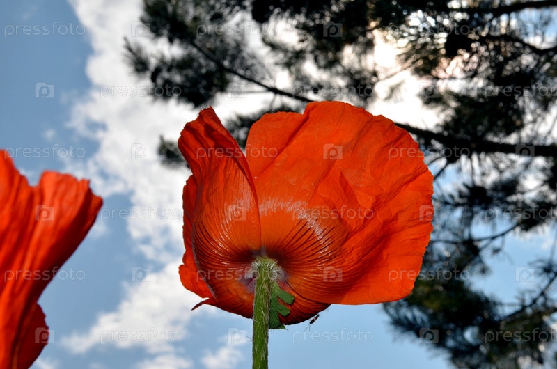 Небесный пейзаж. восточный мак на переднем плане