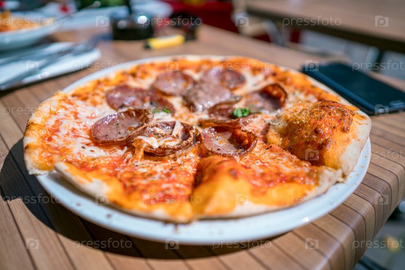 Пицца на столе уличного кафе