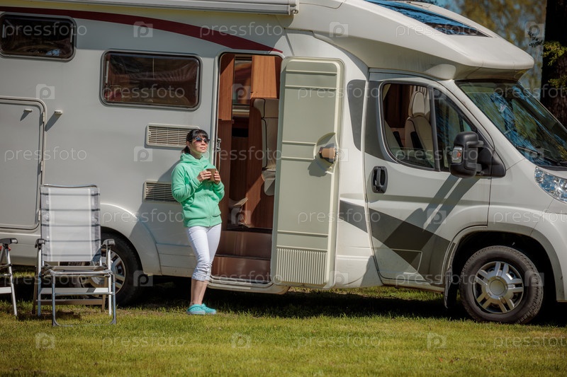 Семейные каникулы путешествия RV, отпускная поездка на трейлере, Караванный автомобиль Отдых