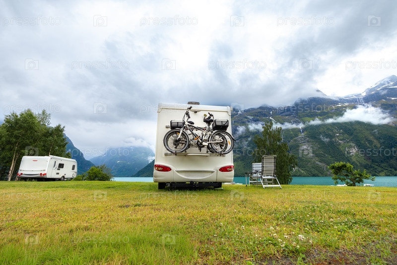 Семейные каникулы путешествия RV, отдых в трейлере, Караванный автомобиль Отпуск