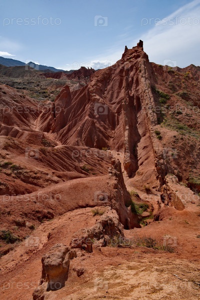 Живописный вид на знаменитую сказочную каньон, глиняные горные вершины которой окрашены в яркие цвета от желтого до красно-коричневого