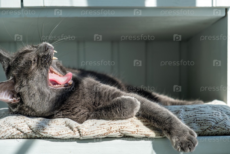 Серый кот на мягкой поверхности