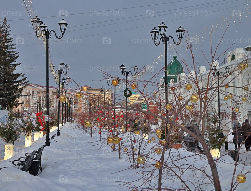Улица музея в городе Омск в новогоднем украшении