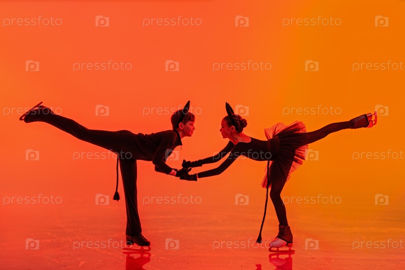 Молодые фигуристы выступают в костюмах Хэллоуина на льду
