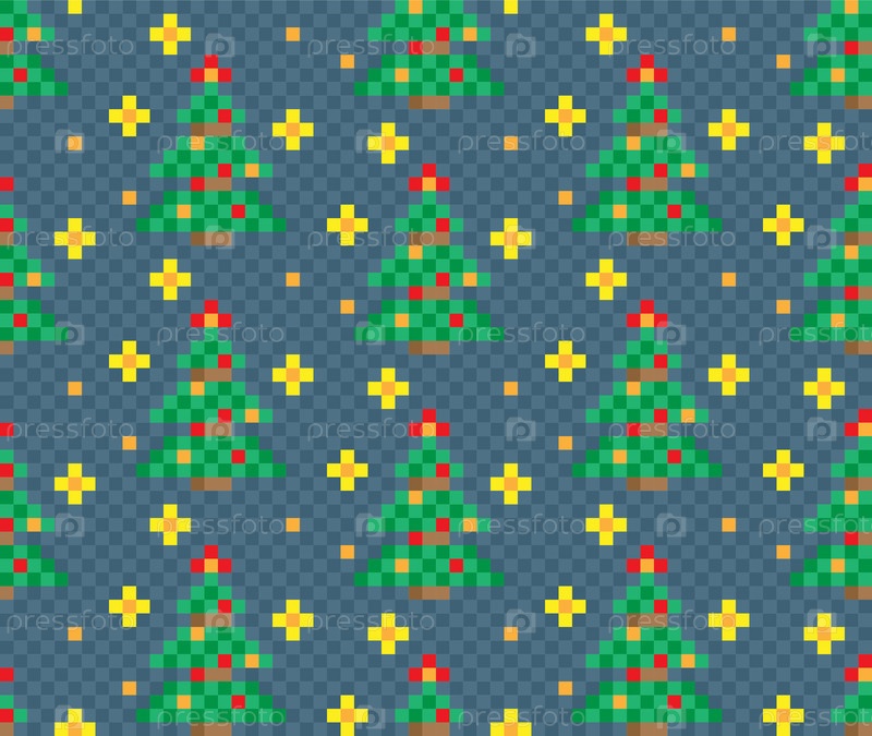 Бесшовный пиксельный фон с новогодней елкой