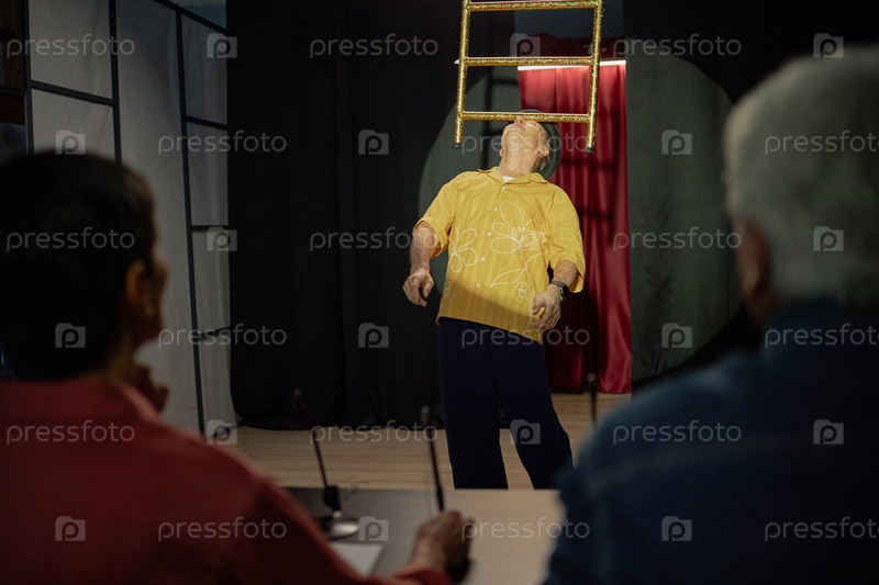 Высокопоставленный мужчина Balancing Ladder on Face Performing Talent Competition Act