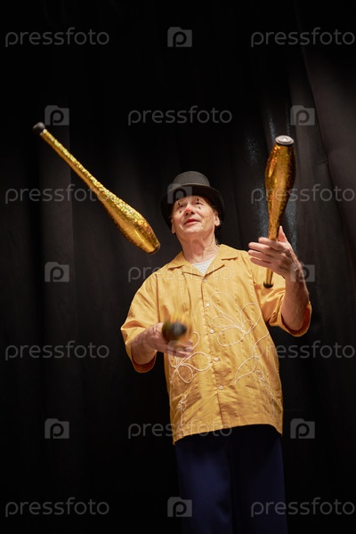 Старшие мужские жонглинг-клубы выступают на сцене во время конкурса талантов