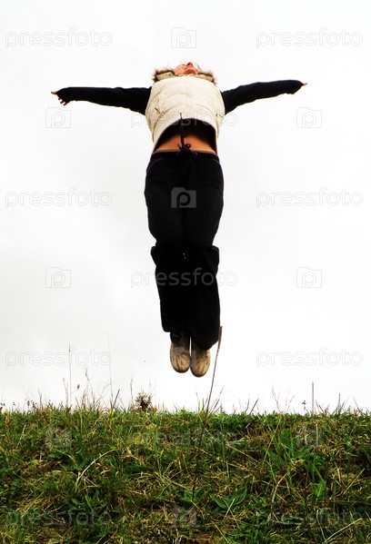 Девушка высоко прыгает
