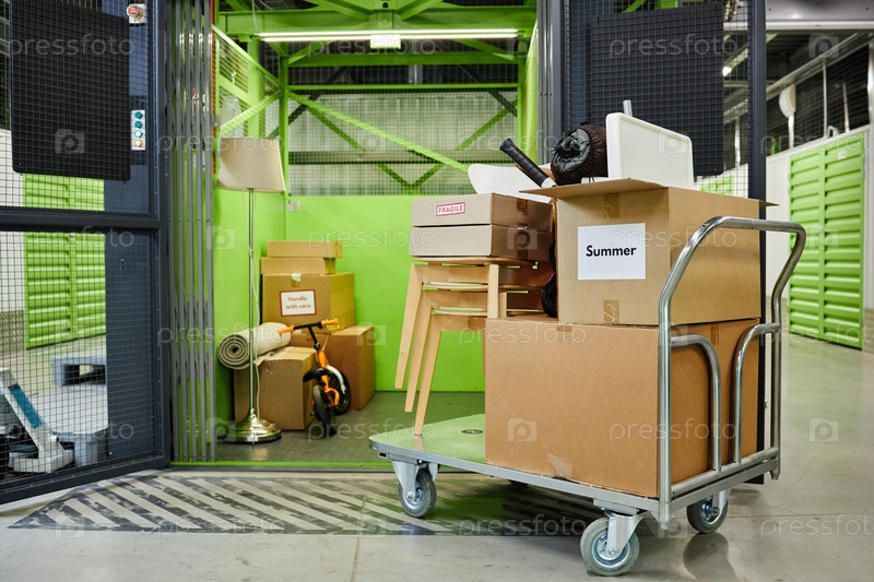 Стол картонных коробок и предметов домашнего обихода, перемещаемых в хранилище