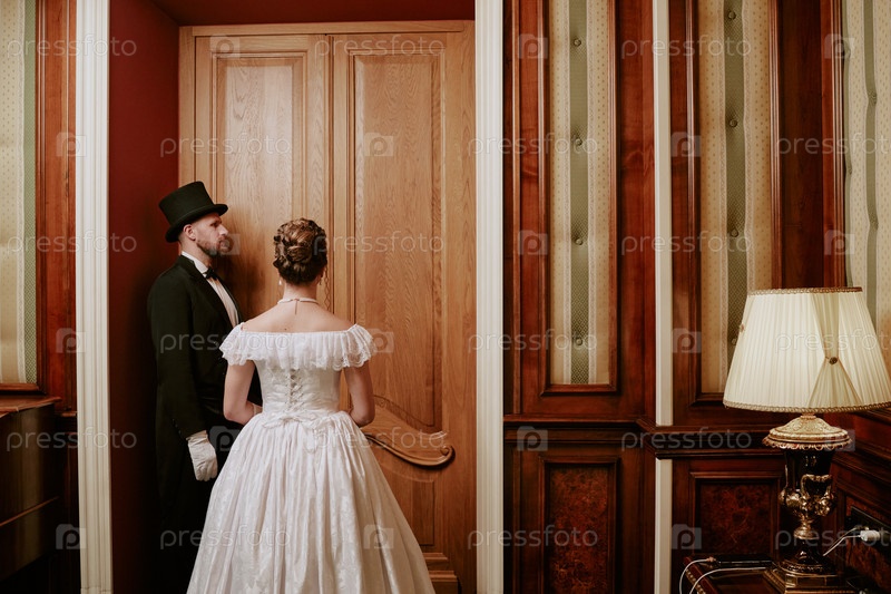 Молодой мужчина и женщина, одетые в формальное обмундирование, стоят внутри
