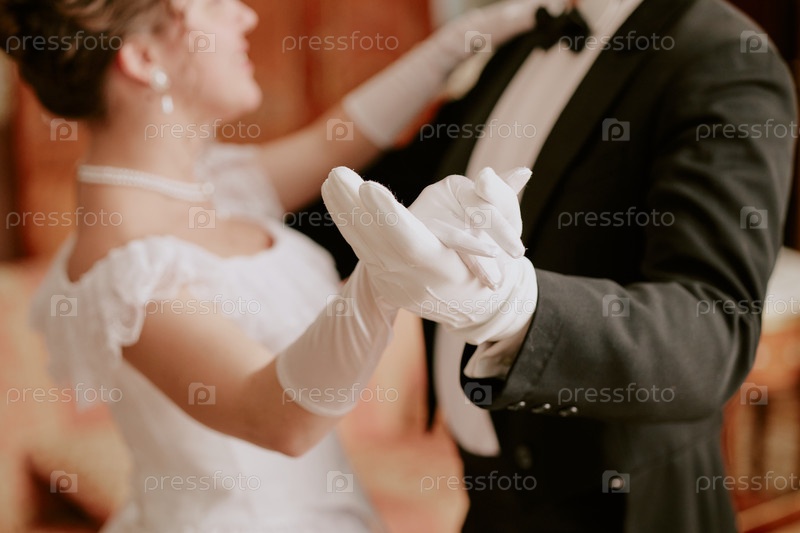 Молодая женщина и молодой мужчина танцуют на официальном мероприятии