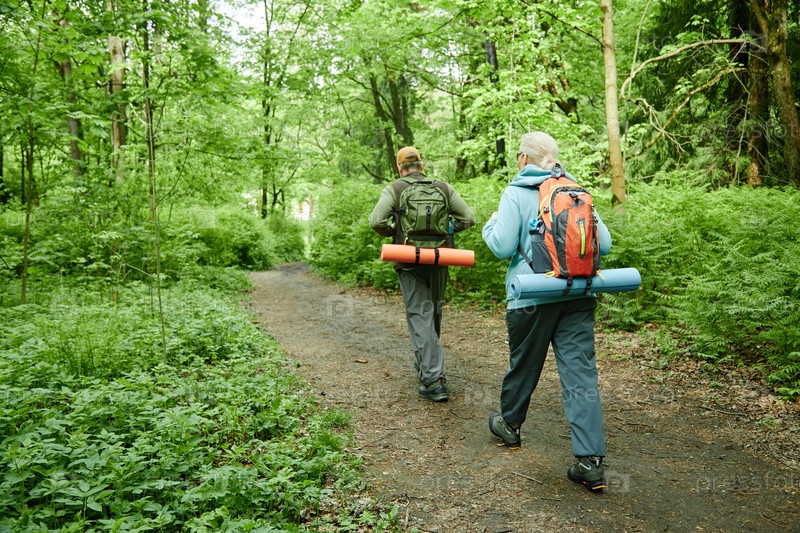 Мужчина и женщина-старший вместе ходят в лес