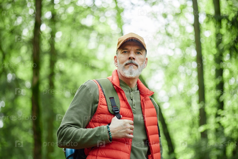 Портрет человека, путешествующего в одиночку по лесу днем