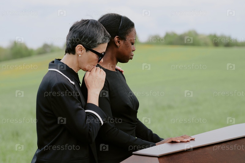 Женщина среднего возраста утешает молодого взрослого чёрная женщина скорбит