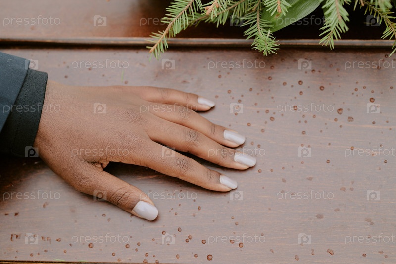Молодая чернокожая женщина кладет руку на гроб во время церемонии похорон