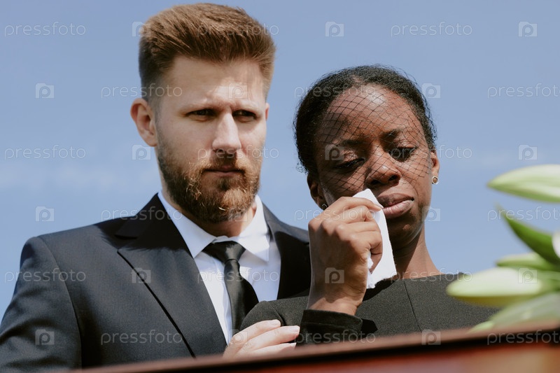 Утешающая скорбящая чернокожая женщина оплакивает похороны на улице