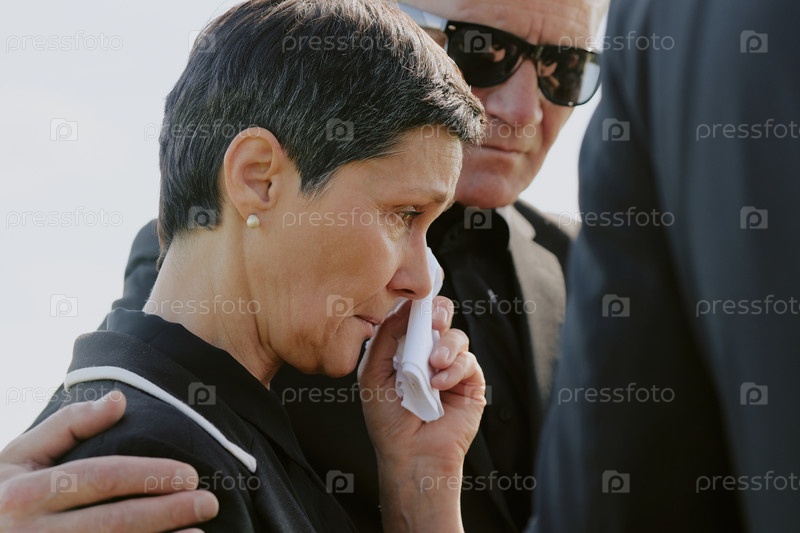 Женщина средних лет скорбит с поддержкой на похоронной церемонии