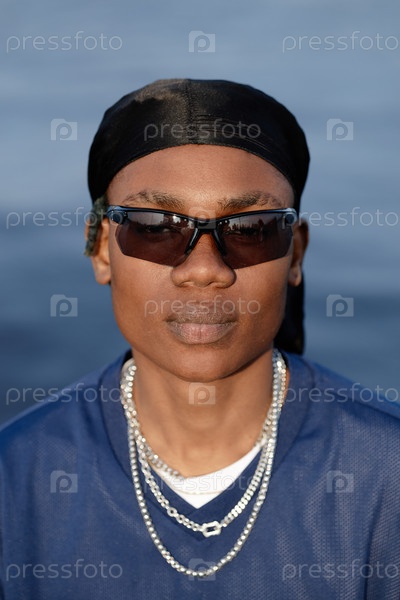 Портрет молодого взрослого чернокожего мужчины в солнцезащитных очках, стоящего на открытом воздухе