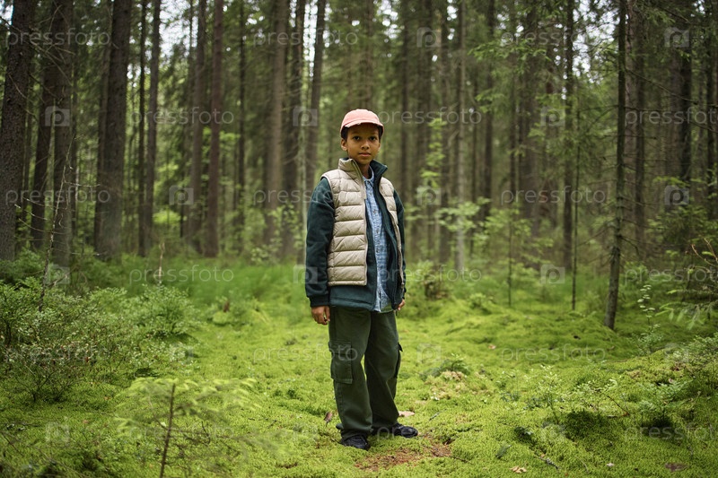 Портрет мальчика-подростка, исследующего лес в одиночку во время открытого приключения
