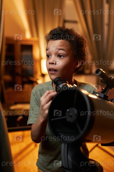 Любопытный ребенок наслаждается наблюдением за звездами и планетами