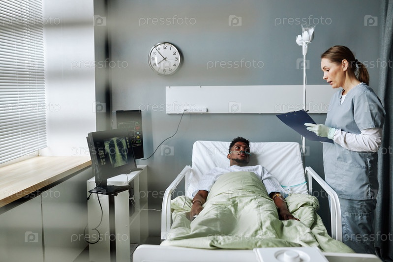 Врач, проверяющий пациента в палате