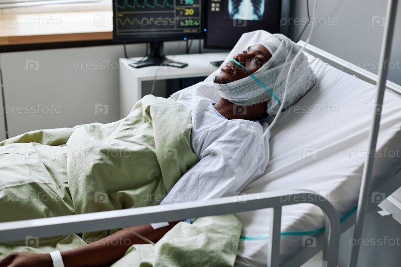 Человек с травмой головы в больничном отделении