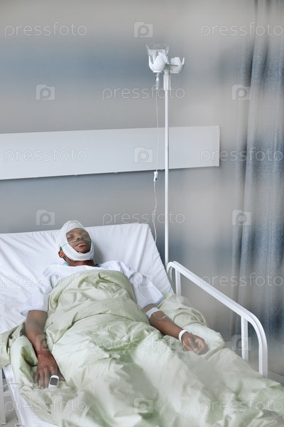 Пораненный мужчина спит в больничном отделении