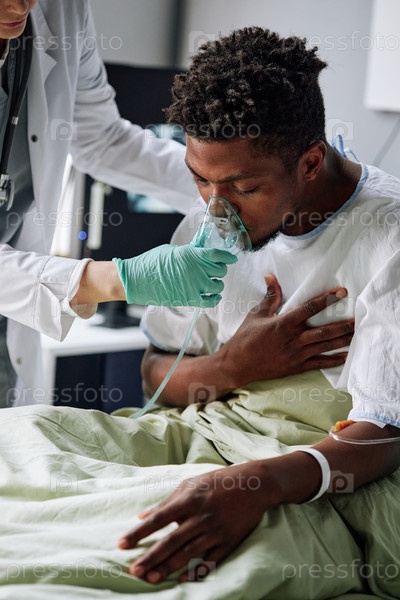 Предоставление маски для вентиляции молодому пациенту-мужчине