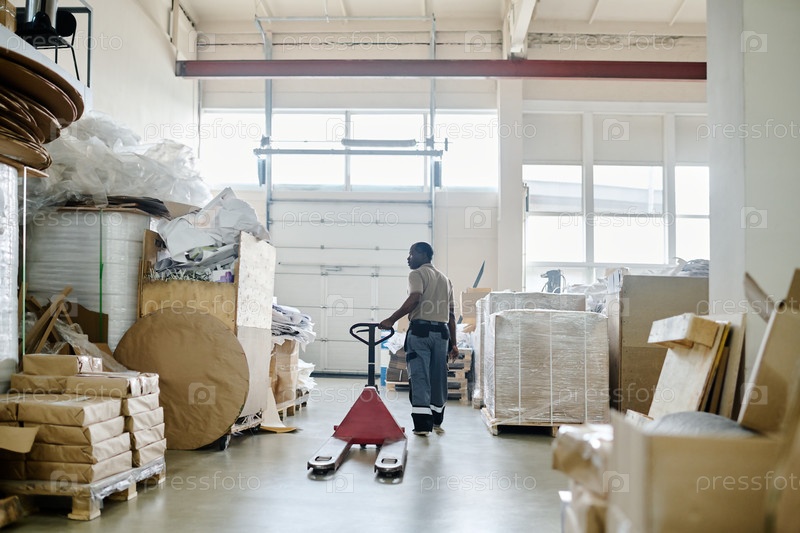 Черный человек на работе в складе