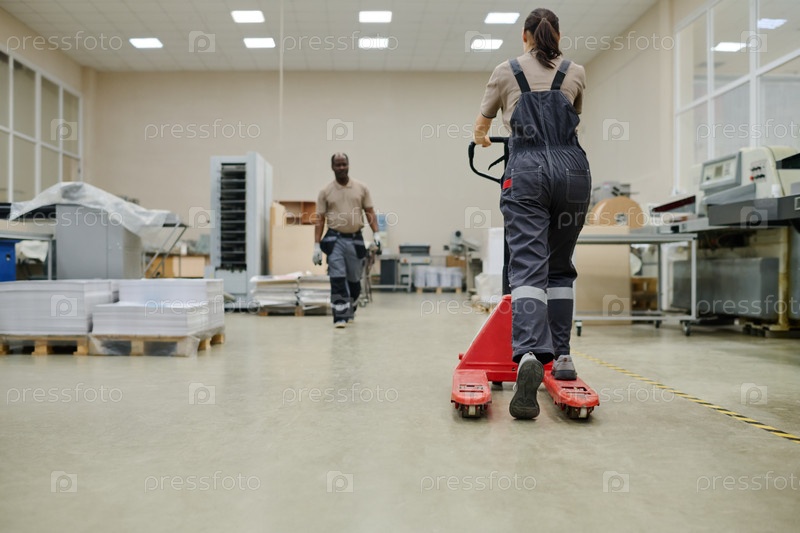 Непризнанная женщина, использующая палетный джак
