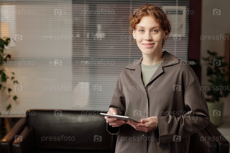 Веселая женщина поколения Z с цифровым планшетом в руках