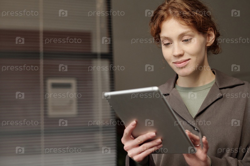 Молодая женщина использует цифровой планшет на рабочем месте в офисе