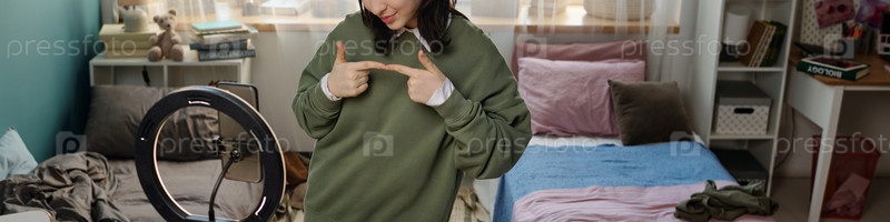 Подростковая девушка записывает видео контент блога с использованием смартфона дома