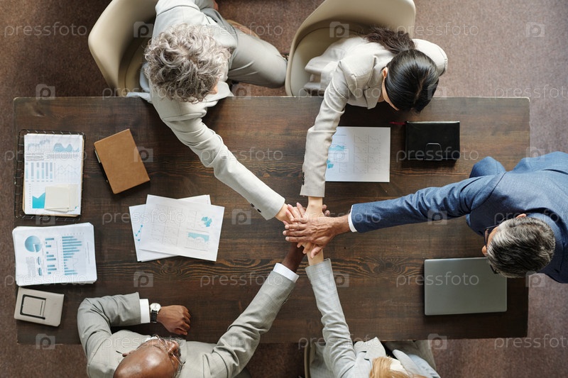 Разнообразная группа бизнесменов среднего возраста, сотрудничающих за круглым столом