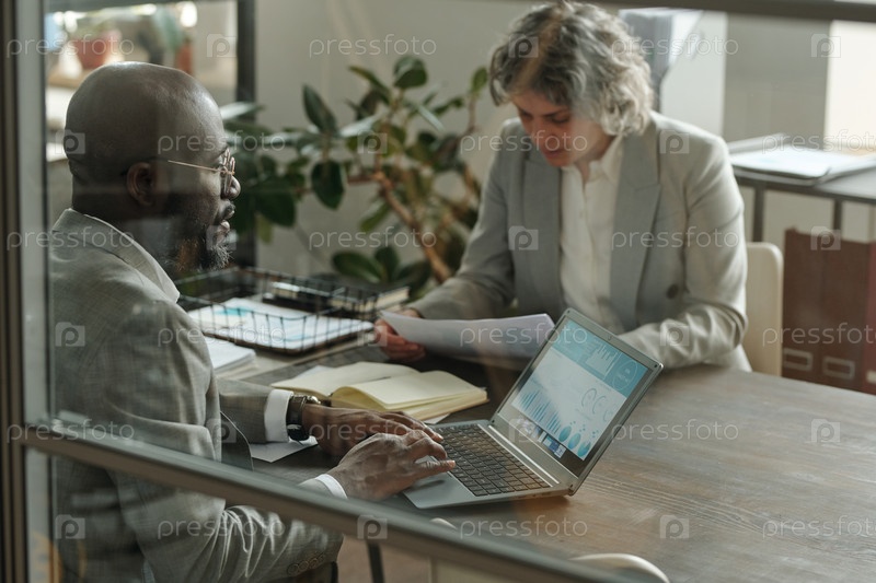 Чернокожий мужчина и женщина средних лет сотрудничают в современном офисе