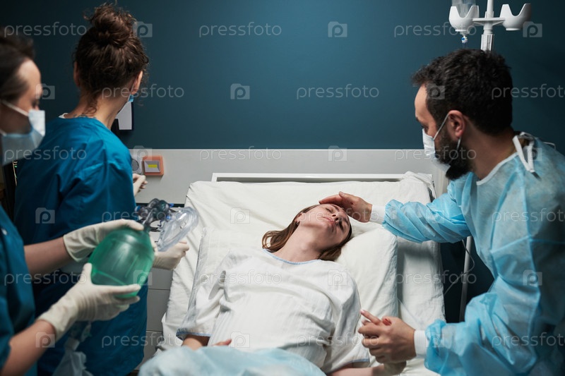 Молодая женщина получает медицинскую помощь от мультиэтнической команды здравоохранения