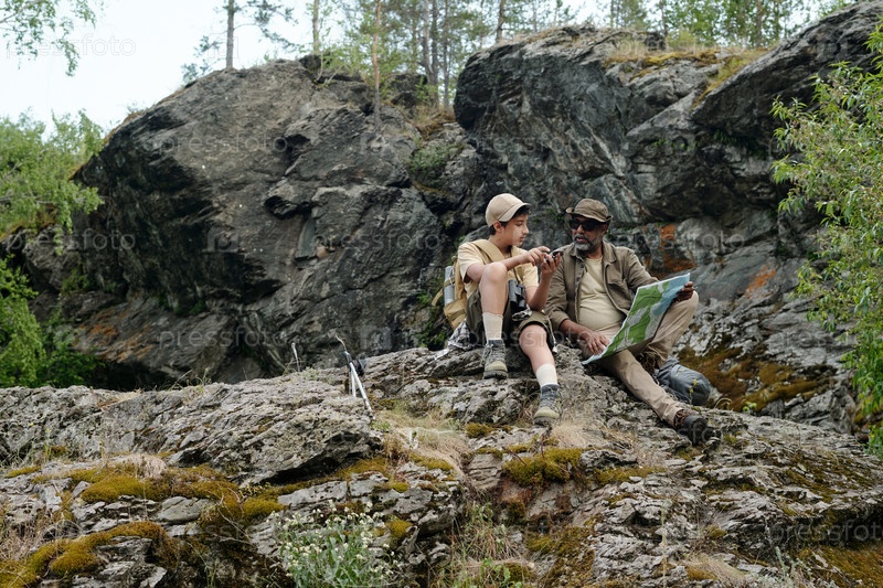 Мужчина средних лет и мальчик-подросток вместе ловят рыбу на открытом воздухе