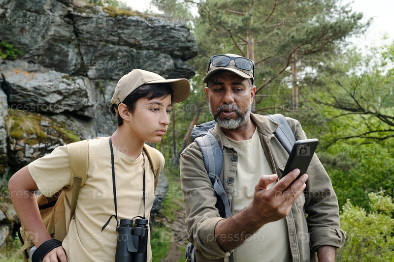 Мужчина среднего возраста преподает рыбацким методам мальчика до десяти лет на открытом воздухе