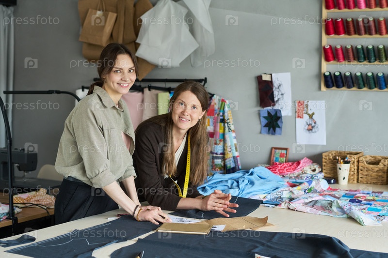 Молодые взрослые женщины, сотрудничающие над проектом по пошиву в студии Two