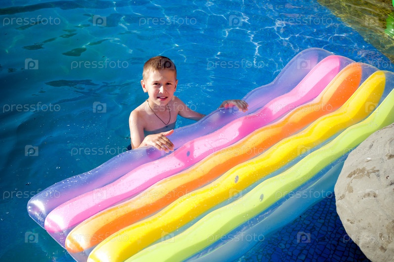 Мальчик в воде с надувным матрацем