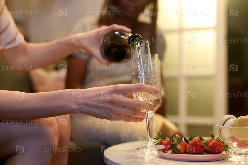Налив шампанского для чернокожей женщины во время общественного собрания